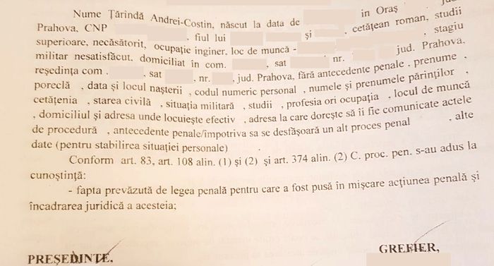 Pe de alta parte, Andrei Tarinda a relatat maniera in care ar fi fost presat sa dea declaratii mincinoase de catre procurorul Mircea Negulescu si in fata judecatorilor Tribunalului Prahova, cu ocazia audierii din data de 9.02.2018 in dosarul nr. 2046/105/2014, in care este inculpat pentru presupuse infractiuni de evaziune fiscala: