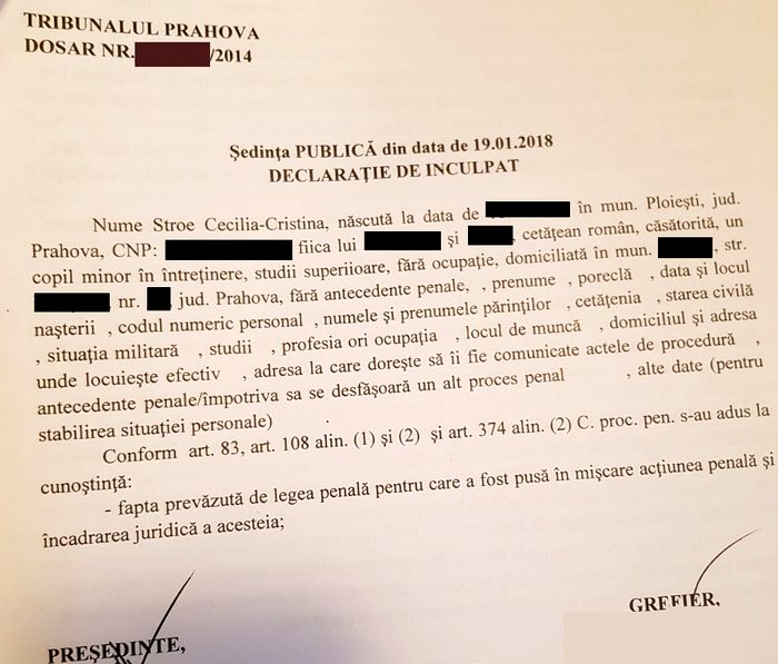 Distinct de audierea de la Inalta Curte, Cecila Stroe a mai fost audiata, in data de 19 ianuarie 2018, intr-un alt dosar, respectiv dosarul nr. 2046/105/2014, aflat pe rolul Tribunalului Prahova, ce are ca obiect infractiuni de evaziune fiscala si in care are calitatea de inculpata, ocazie cu care a relatat urmatoarele:
