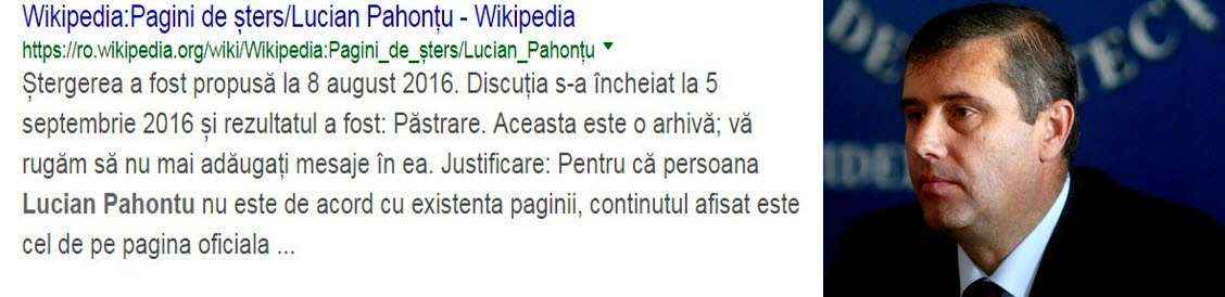 In anul 2016, Lucian Pahontu insusi, asa cum se observa in imaginea alaturata, si-a exprimat dorinta ca niste informatii despre el sa fie sterse de pe Wikipedia. Ce avea de ascuns (in afara faptului ca e implicat intr-o crima prin imprudenta la o vanatoare)?