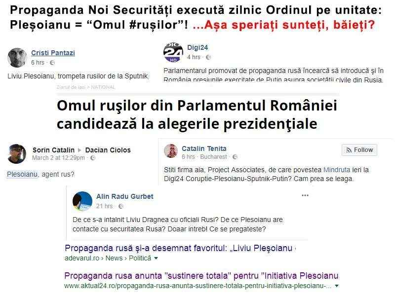 Caz școală de manipulare: căutați „Liviu Pleșoianu Rusia” pe Google sau pe Facebook. Vă veți face astfel o idee despre dimensiunea propagandei menite să inoculeze ideea că „Pleșoianu e omul rușilor”. Nu e zi în care să nu apară câte o nouă… „informație” în acest sens.