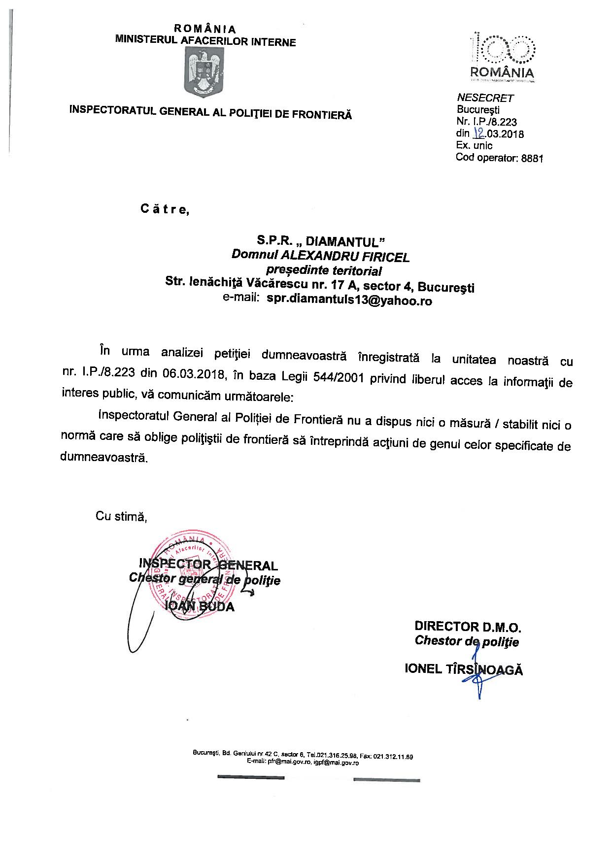 Iar SPR „Diamantul” a demonstrat si demonstreaza ca isi apara membrii strict in limitele tratatelor internationale la care Romania este parte, Constitutiei si a Legii nicidecum in baza prieteniilor cu sefimea si/sau a chermezelor „mocca” oferite de sefime „reprezentativilor” pentru a va tine piciorul sefilor pe beregati!