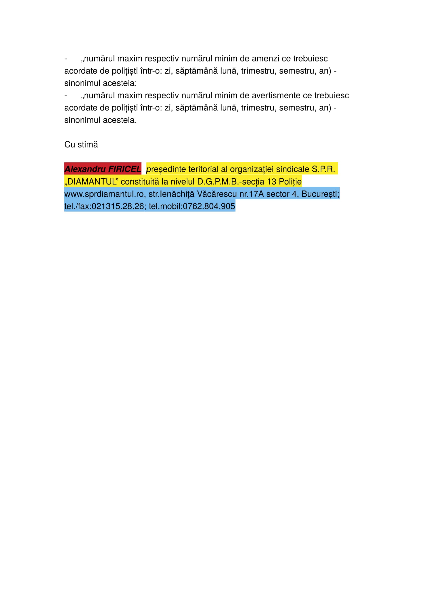 Asadar, dragi politisti din strada si din frontiera, nu mai „puneti botul” la vrajeala acelor sefi inculti, abuzatori, ilegalisti gen Smarandache si Lucaci – sefii sectiei 1 Politie Cluj, intrucat legea e de partea voastra (art. 4 si 5 din legea 360/2002, art.1-4 din Legea nr.218/2002 si art.7,22 si 23 din HG nr.991/2005).