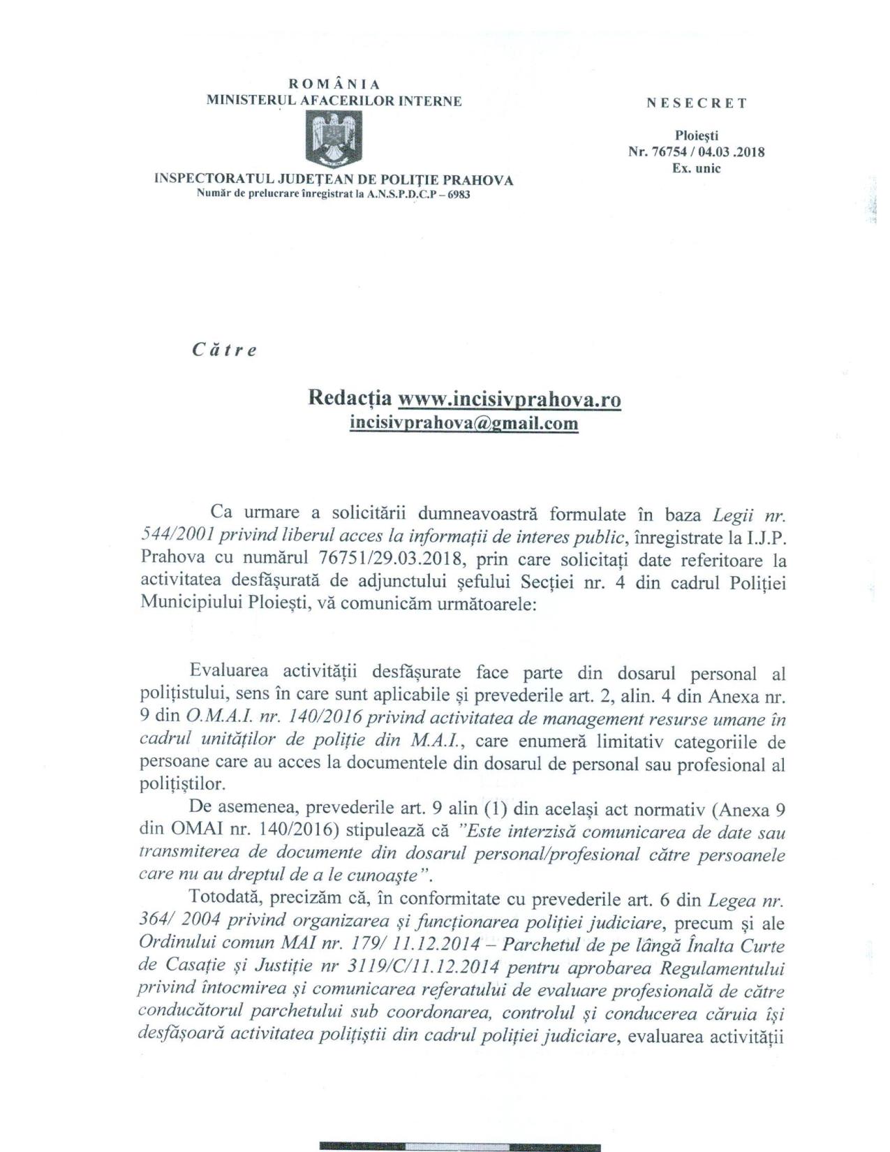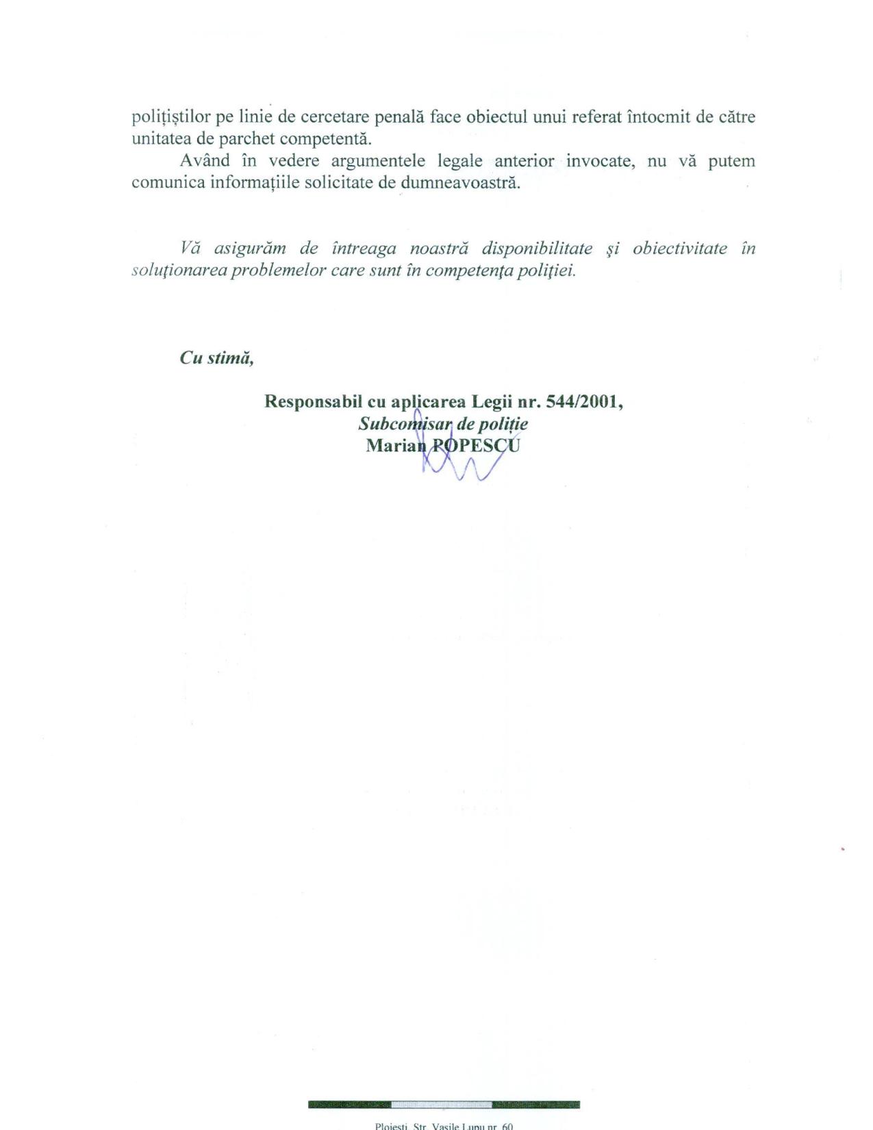 „Normal”, zicem și noi, că asemenea informații „nu sunt publice” întrucât se evidențiază gravele abateri de la Lege ale unui filfizon (și câți ca el nu sunt în M.A.I.) ajuns într-o funcție de conducere prin șpăgi, amenințări, furt etc., așa cum ajung șefi în M.A.I. marea majoritate (din păcate).