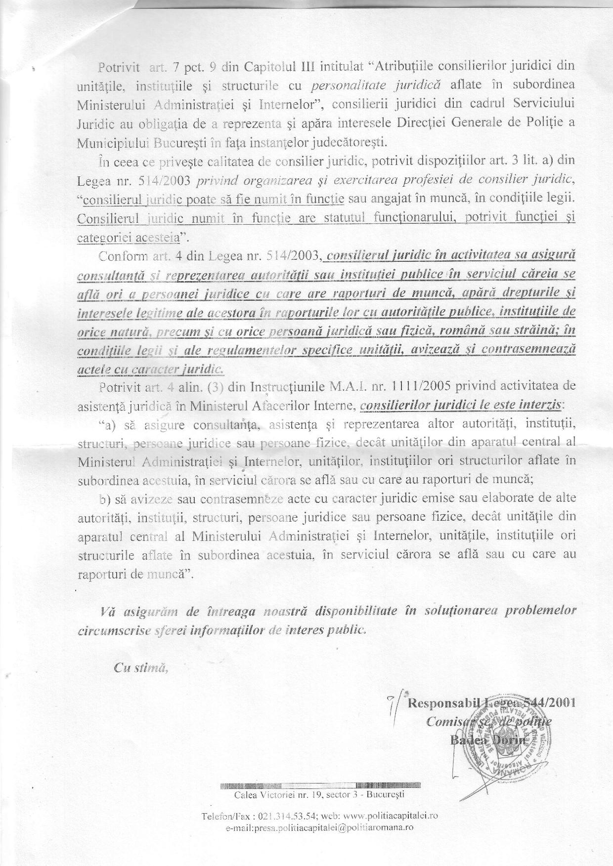 Așadar, falșii polițiști din Aparatul central al M.A.I. respectiv structurile suport ale D.G.P.M.B. au toate motivele să nu răspundă solicitării: doar fură, la propriu, banii statului Român pentru a menține în funcții de poliție indivizi care nu îndeplinesc aceste atribuții.