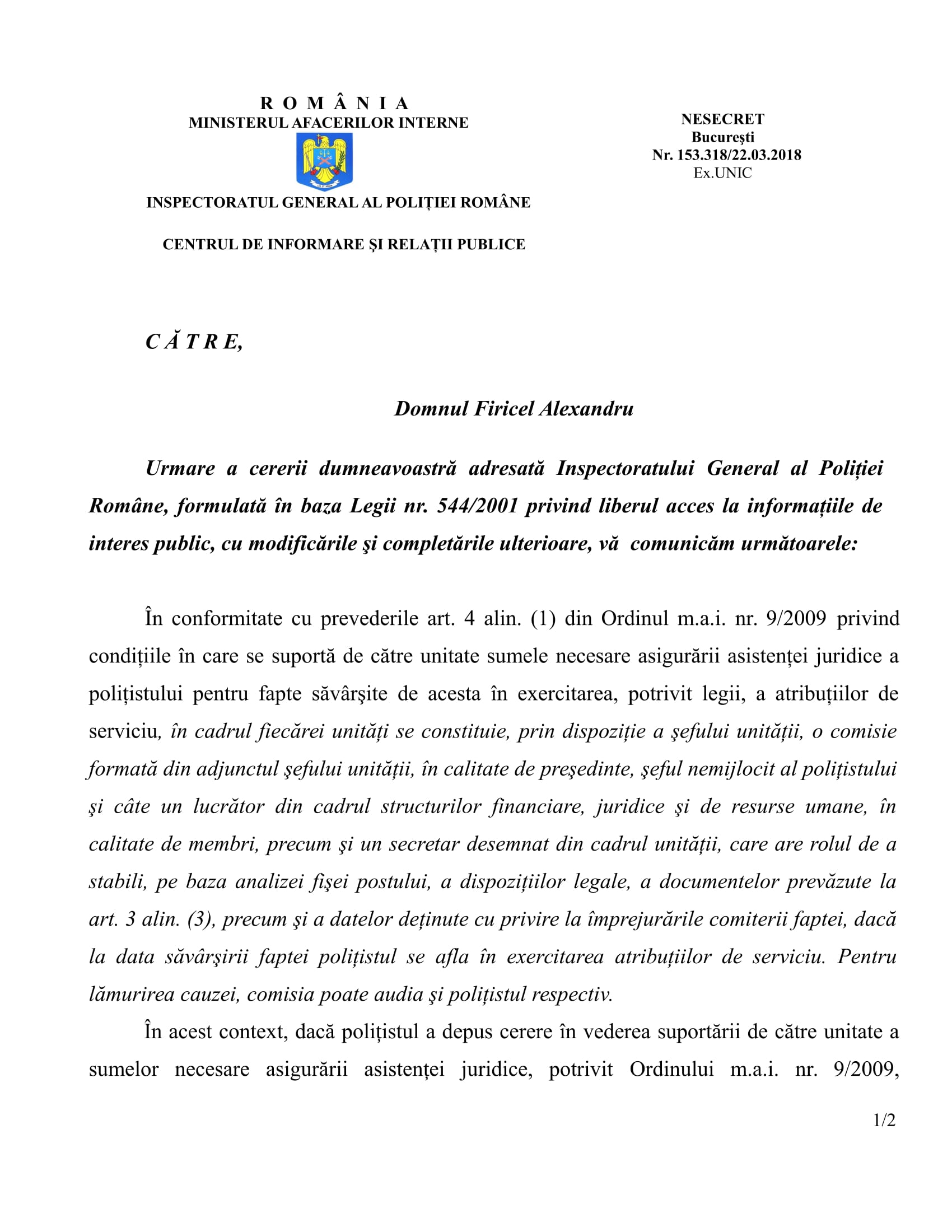 [1] Articolul 28(1) Polițistul are dreptul la: o) suportarea de către unitate a sumelor necesare asigurării asistenței juridice a polițistului, pentru fapte săvârșite de acesta în exercitarea, potrivit legii, a atribuțiilor de serviciu, în condițiile stabilite prin ordin al ministrului afacerilor interne;