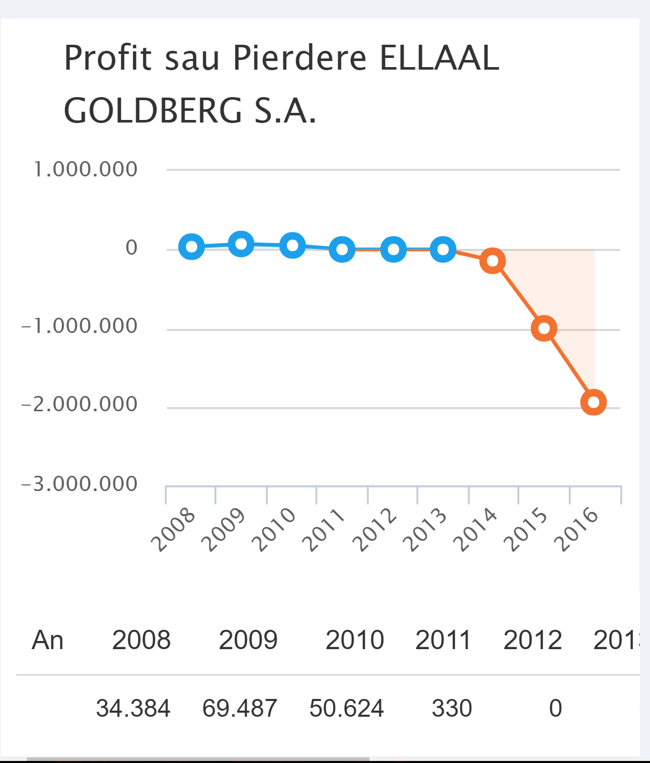 Potrivit ultimului bilanț contabil, la finele lui 2016 firma Ellaal Goldberg avea pierderi de 1.943.397 lei și înregistra datorii de 1.428.683 lei. De la înființare pînă în 2015, firma a avut între zero și un angajat, apoi 11 în 2015 și 16 în 2016.
