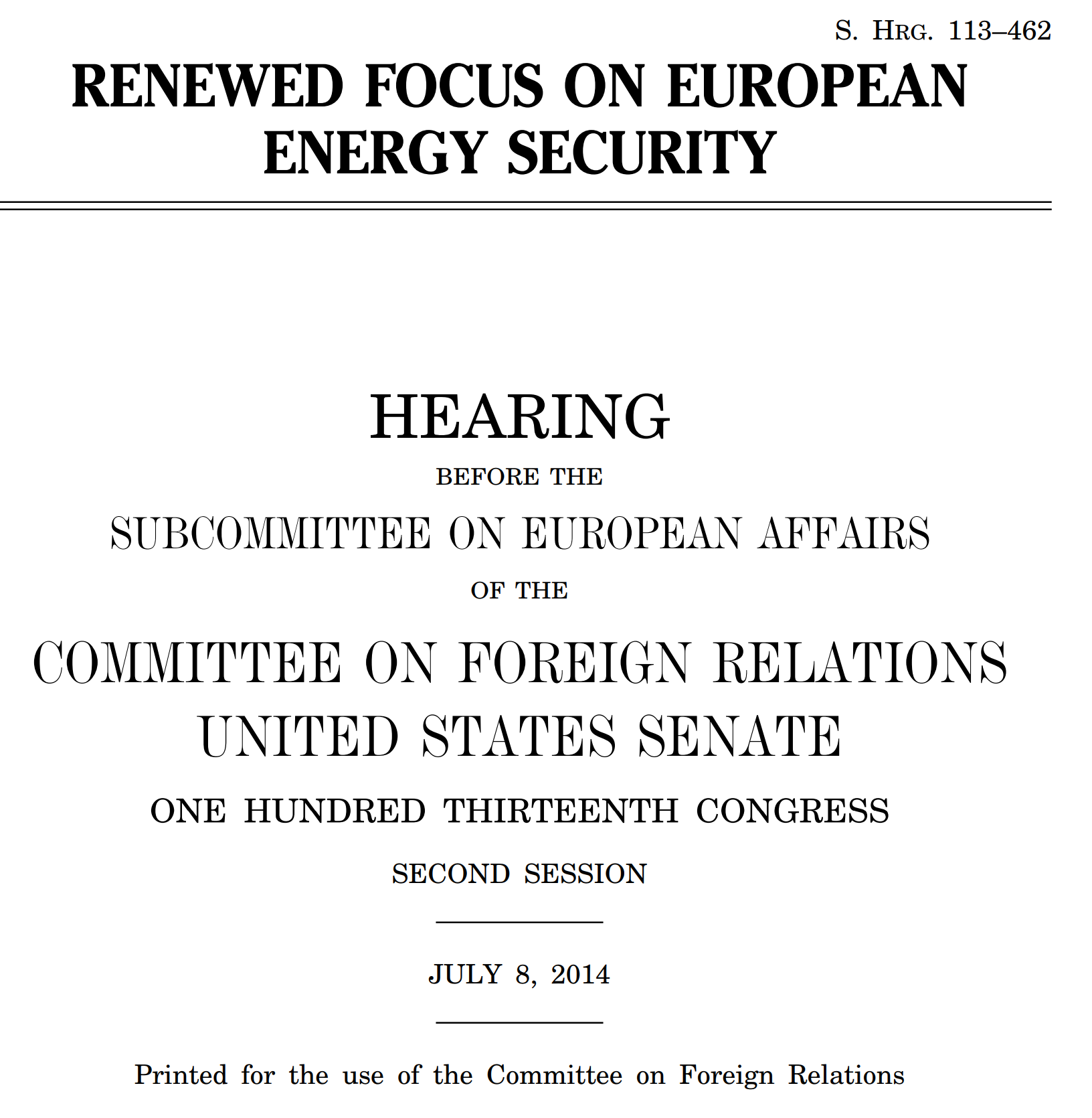 În iulie 2014, subcomisia pentru afaceri europene a Comisiei senatoriale de relații externe a audiat cîțiva oficiali ai Departamentului de Stat, între care adjuncții lui John Kerry, i-am numit pe Hoyt Yee, responsabil cu afacerile europene și asiatice, și pe Amos Hochstein, însărcinat cu problemele energetice, stenograma fiind postată pe siteul comisiei.