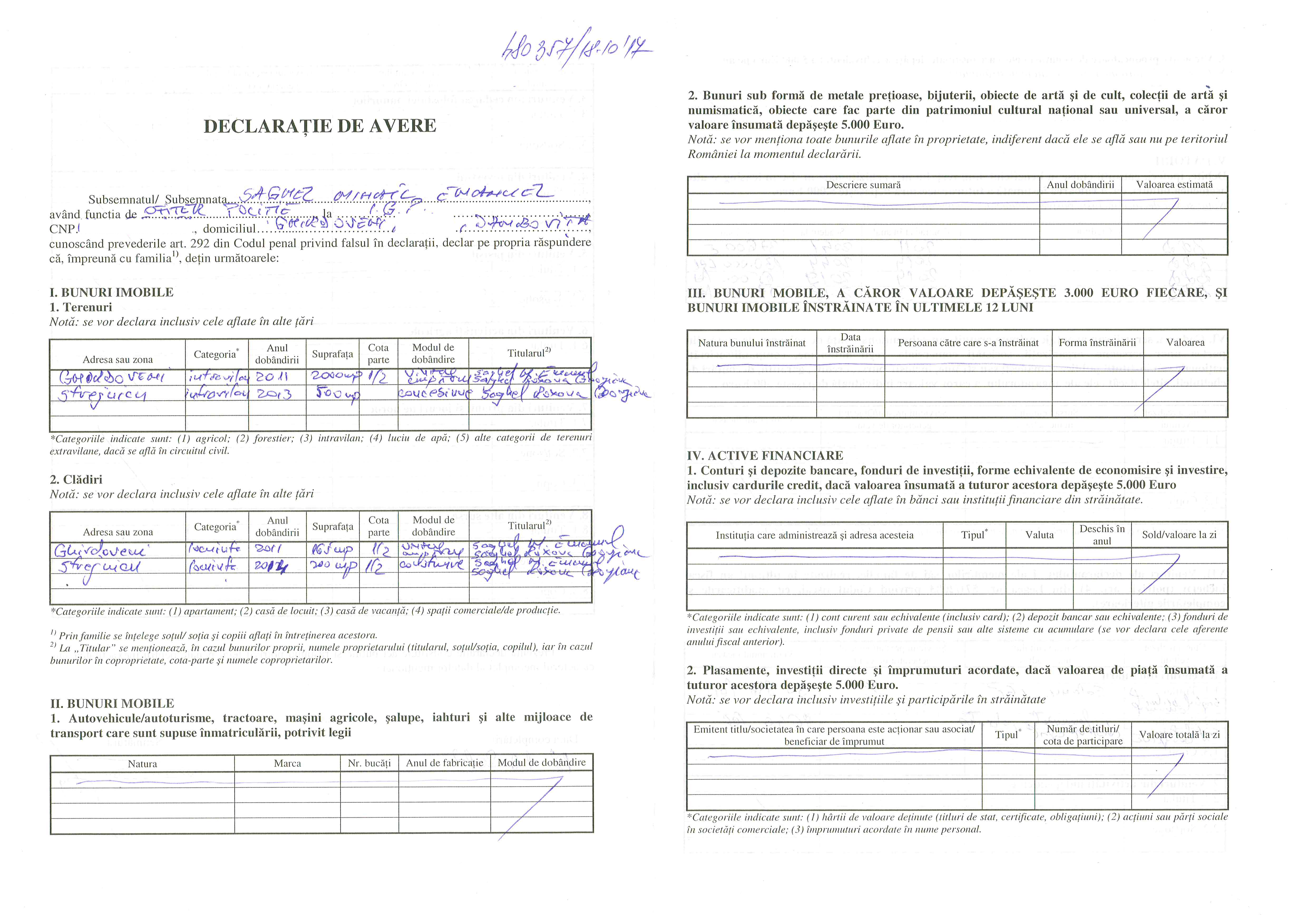 - Magistratul a obţinut terenul de sub construcţie şi cel aferent şi a ridicat casa în condiţii nelegale, frauduloase, interpunându-l pe fiul său, NEGULESCU DRAGOŞ ALIN.