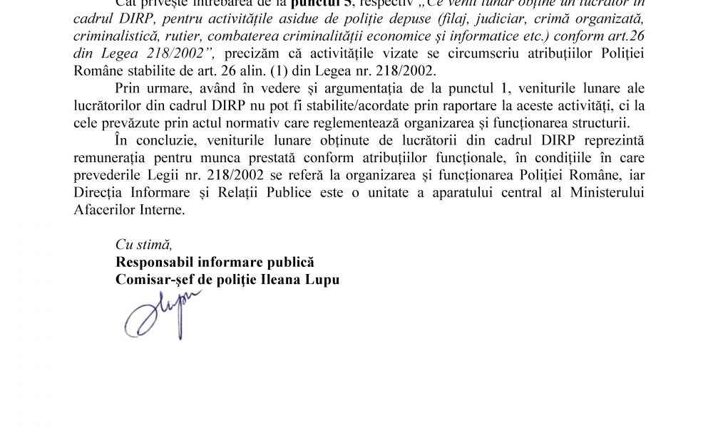 Acum înțelegeți, dvs., cititorii noștrii, de ce „datele personale” ale falșilor polițiști din M.A.I. nu sunt publice? De ce refuză să își afișeze fotografiile („marii șefi”, în special) pe sitte-ul instituției? Fiindcă știu că nu fac nimic toată ziua dar sunt remunerați și recompensați regește pentru atribuții de poliție inexistente: „polițistul încadrat într-o unitate a aparatului central, prin activitatea desfășurată, contribuie la realizarea misiunilor Poliției Române, astfel cum sunt prevăzute de Legea nr. 218/2002”. Adică, în mintea acestor ilegaliști, toți din M.A.I. trebuie să fie „polițist” indiferent de ce atribuții îndeplinesc.