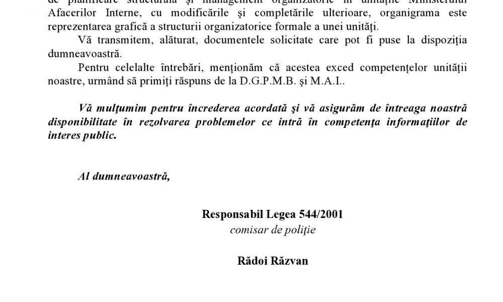 Acum 2 săptămâni solicitam public MAI-ului, IGPR-ului și DGPMB-ului să ne comunice informațiile publice cu privire la șefi și înființarea acestora. Bineânțeles că MAI-ul și DGPMB-ul nu au răspuns fiindcă știu foarte bine că sunt instituții ilegale. În schimb, mai înainte de toate, trebuie să apreciem curajul IGPR-ului ce constă în curajul de a evidenația gravele derapaje de la statul de drept întreprinse chiar de Poliția Română cu girul M.A.I.-ului.