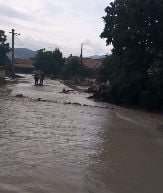 De asemenea, drumurile din localitate si imprejurimi au fost blocate, mai multe masini au fost luate de viituri, iar apa a produs avarii in gospodarii, dupa ce a plouat torential cateva ore, iar paraurile s-au revarsat.