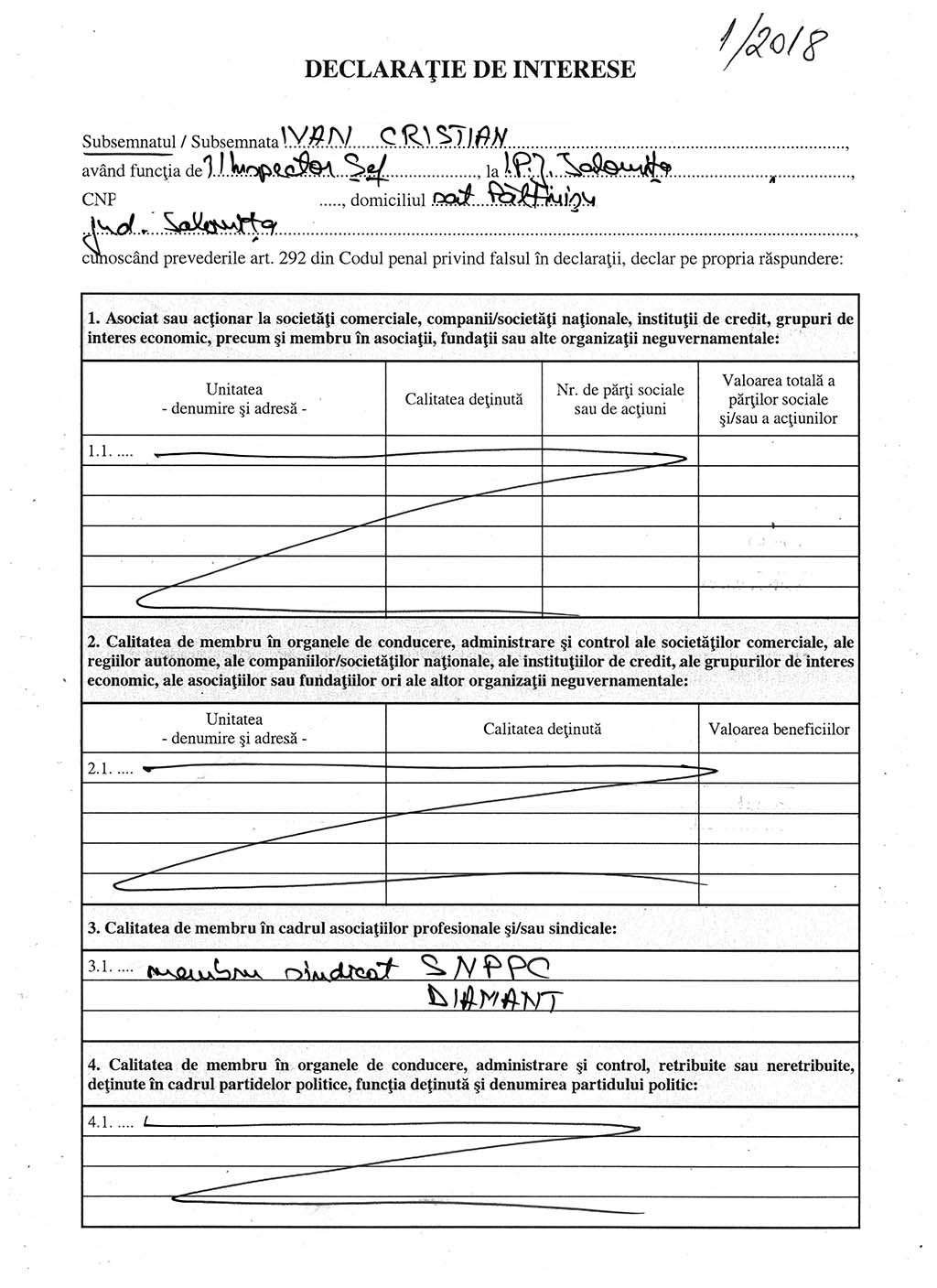 În cazul „președintelui” SPR „Diamantul”, Nedelcu Cătălin, acesta nu s-a sfiit să se laude, public, cu „prietenia” dintre el și șeful IPJ Ialomița, Ivan Cristian (șeful IPJ, membru sindical atât în organizația SNPPC cât și în Diamantul). O fi cumva vreo cutumă secretă în M.A.I. ca, pentru a ajunge șef-polițist să fii și membru în SNPPC? Tot ce se poate… important este faptul că prin aderarea șefului IPJ Ialomița la 2 sindicate (mai ales „Diamantul”), cei 2 buni prieteni pot sta liniștiți: șeful IPJ (Ivan) nu-l „atacă” pe subalternul polițist (Nedelcu) și „liderul sindical diamantin” (Nedelcu) nu-l atacă pe membrul-șef polițist (Ivan), precizeaza cei de la Incisiv de Prahova.