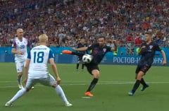 min.42 – Modric suteaza spre poarta lui Halldorsson, dar mingea se duce mult pe langa.