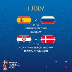 Va intra in joc gazda Rusia, care are o misiune extrem de grea in fata castigatoarei grupei B, Spania, fosta campioana mondiala din 2010. Partida incepe la ora 17, fiind programata pe stadionul Lujniki din Moscova. Cele doua s-au mai duelat si in semifinalele EURO 2008, scor 3-0 atunci pentru viitoarea campioana europeana.