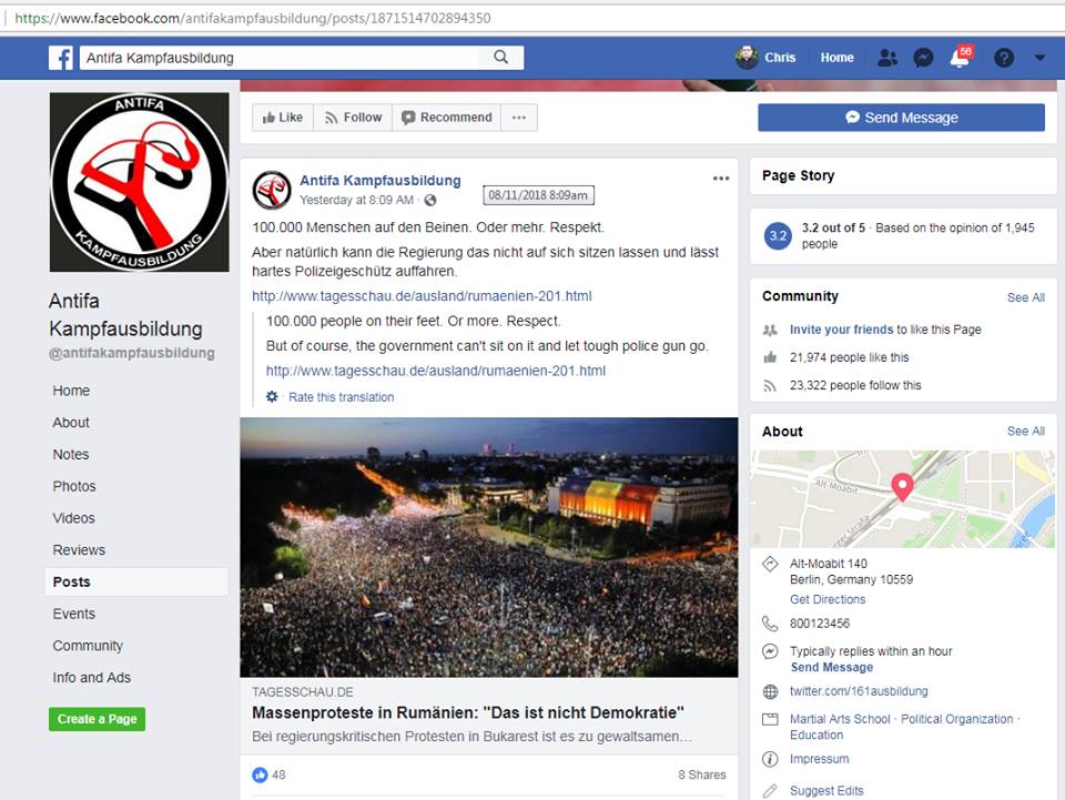 EXPLOZIV/ANTIFA Berlin sustine protestele din Romania/SRI doarme sau inchide ochii?