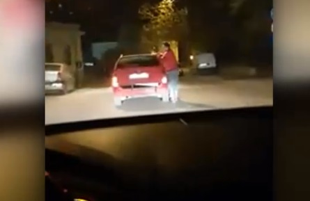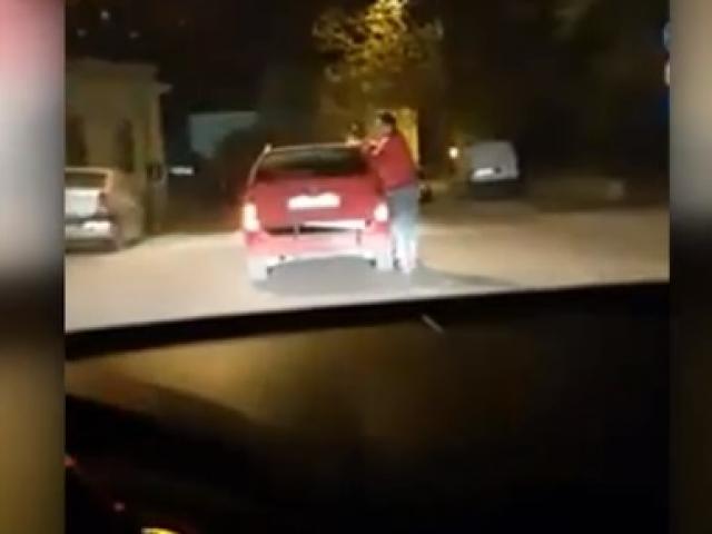 VIDEO. Pe role, agăţat de o maşină în viteză