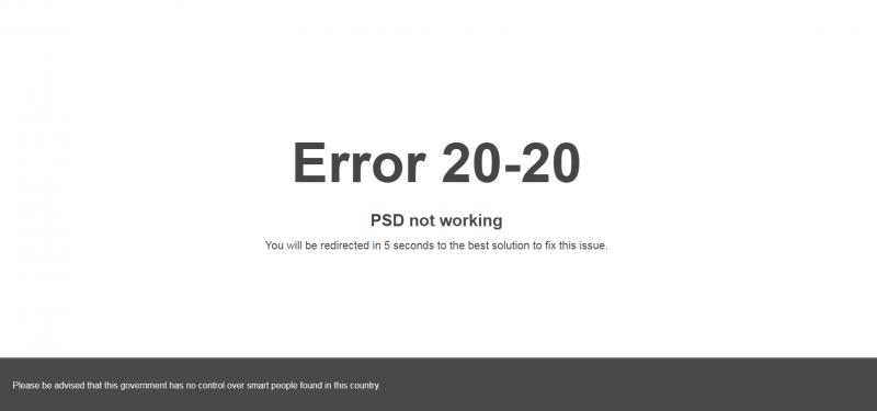„Eroare 20-20. PSD nu funcționează. Vei fi redirecționat către cea mai bună soluție de rezolvare a acestei probleme”, acesta este mesajul care apare pe site-ul romaniameritamaimult.ro, asemănător sloganului de campanie al PSD.