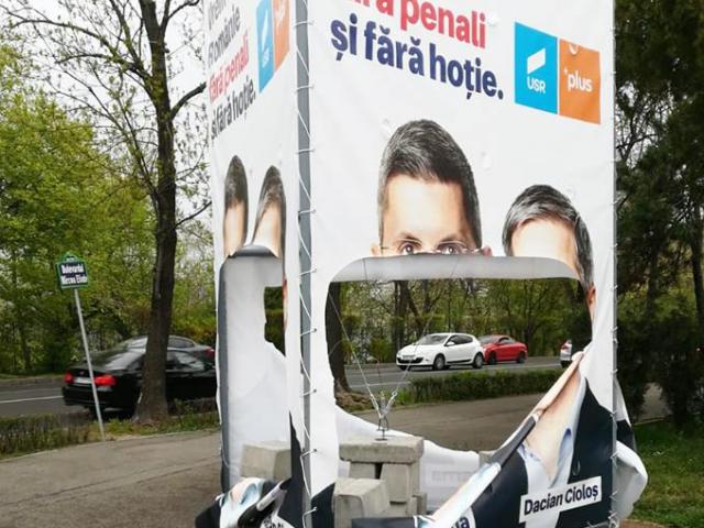 Corturile și panourile Alianței 2020 USR-PLUS montate în mai multe puncte din București au fost vandalizate peste noapte. În imaginile publicate de liderul PLUS Dacian Cioloș și Cristian Ghinea, deputat USR, se vede cum de pe corturi au fost decupate chipurile candidaților la alegerile europarlamentare care vor avea loc în 26 mai 2019.