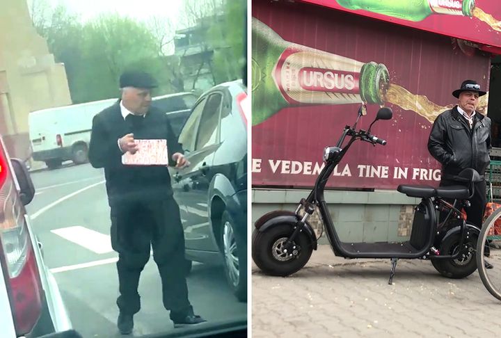 Potrivit cancan.ro, bătrânul poartă numai la costum și pălări, atunci când nu prestează și conduce un scuter de peste 2.000 de euro, extrem de frumos şi de nou.