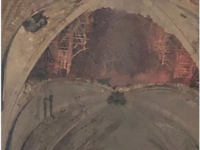 Pe Twitter au apărut câteva imagini din interiorul catedralei, din locul unde a căzut turla.