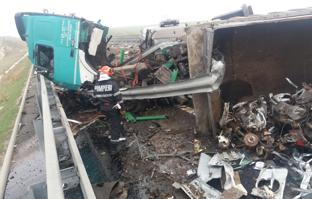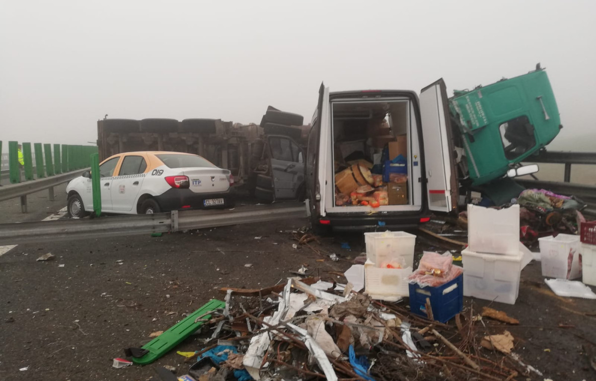 FOTO. Accident pe Autostrada A2. Patru persoane au fost rănite