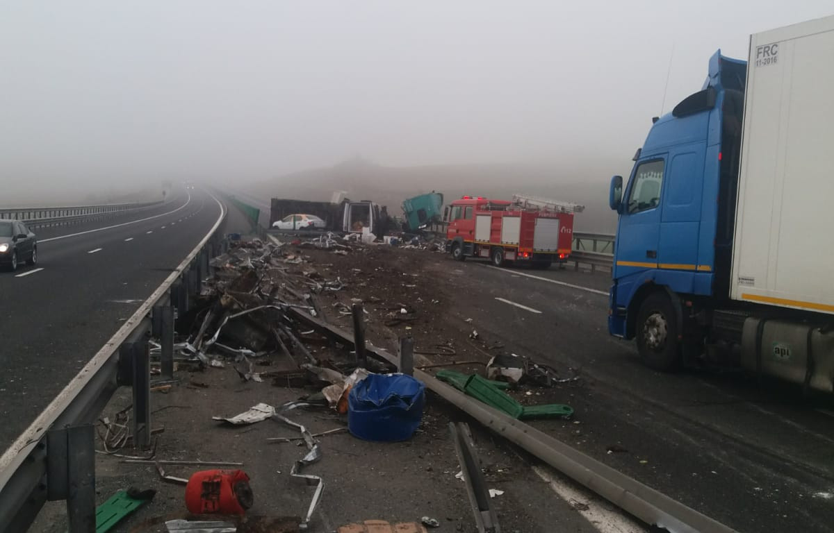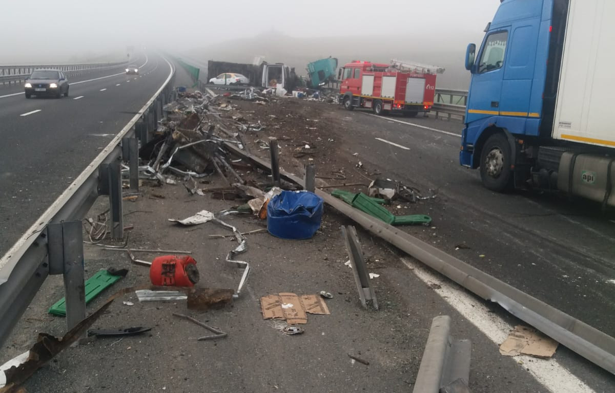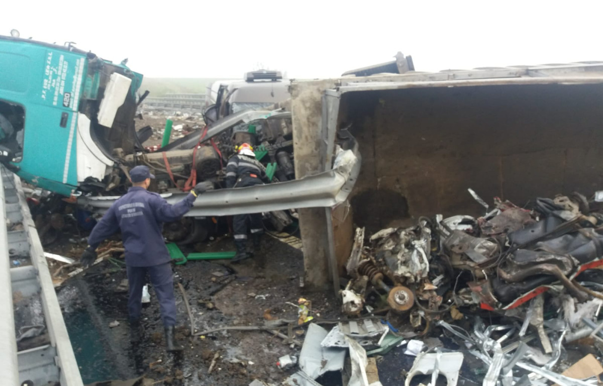 Potrivit Centrului Infotrafic, joi dimineaţă, pe Autostrada A2 Bucureşti – Constanţa, la kilometrul 168, în zona localităţii Cernavodă, a avut loc un accident rutier în care au fost implicate un autotren încărcat cu deşeuri metalice, o autoutilitară şi un autoturism.