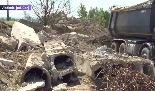Diana Speretoiu, jurnalist Digi24: În actele trimise la Ministerul Dezvoltării, aici figura ca aproape gata, un pod de 23 de metri, din structură metalică. În realitate, utilajele au ajuns în şantier de doar două luni, iar lucrările sunt departe de a fi gata