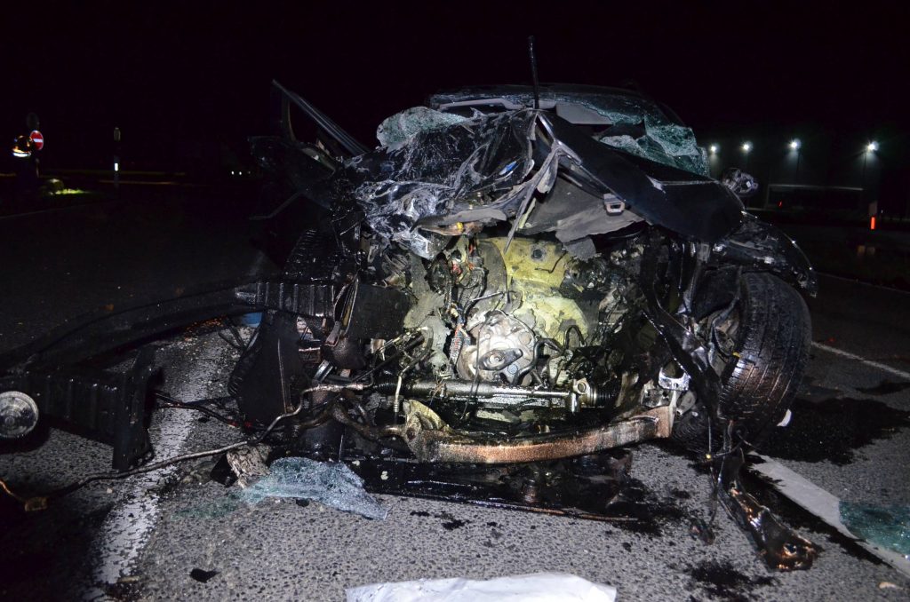 Din primele cercetări, se pare că șoferul unui BMW cu numere de România nu a respectat semnul STOP dintr-o intersecție și nu a acordat prioritate unui TIR care transporta carne de pui. În urma impactului camionul a ieșit de pe carosabil și s-a răsturnat. BMW-ul a fost distrus aproape în totalitate, șoferul acestuia având răni ușoare. Un pasager este în afara oricărui pericol, în timp ce alt pasager și șoferul camionului sunt răniți grav.