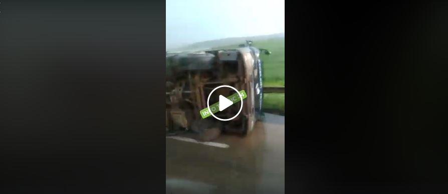 [VIDEO] Accident rutier – un camion s-a răsturnat