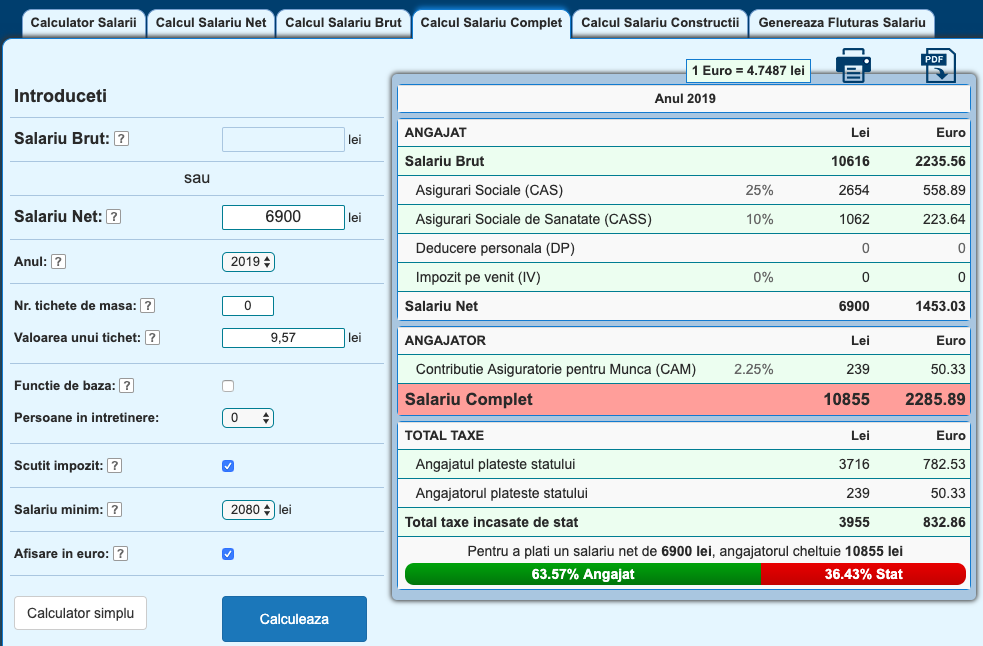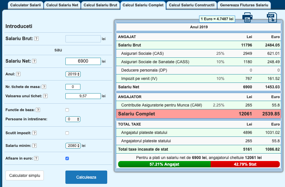 Salariul mediu net în IT era de aproximativ 6900 RON Net în Februarie 2019, conform INS. Pentru acest salariu un programator generează total taxe încasate de stat de 3955 RON. Salariul mediu net pe economie este de 2936 RON, cu un total taxe încasate de stat de 2196 RON.