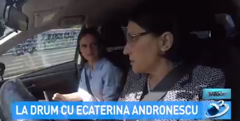 În cadrul emisiunii, Ecaterina Andronescu este prezentată discutând cu reporterul în timp ce se îndreaptă cu mașina spre Politehnică. Iar ministrul, aflat la volan, pare să nu poarte centura de siguranță.