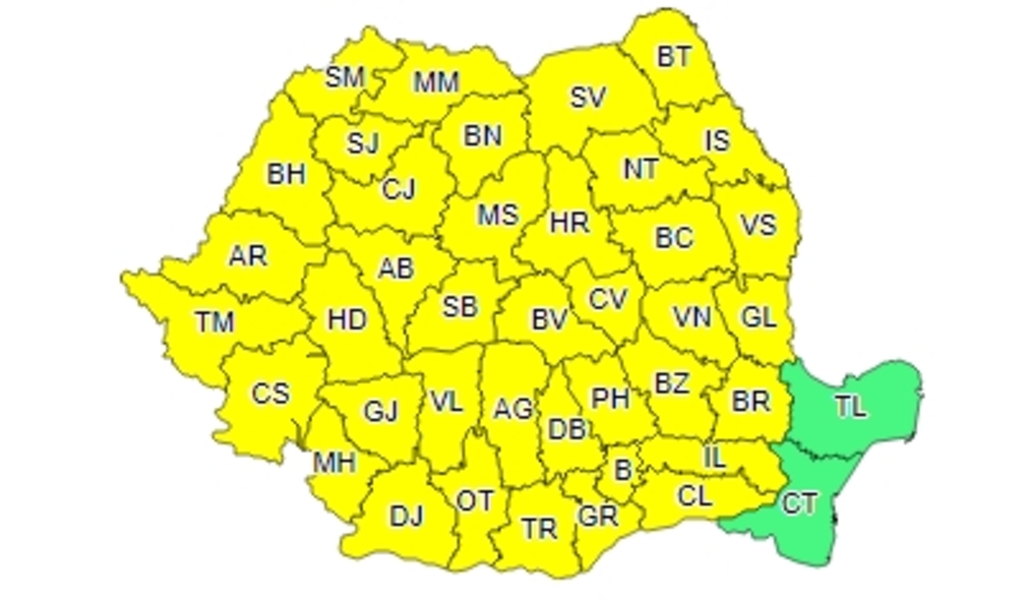 O altă atenționare Cod Galben este în vigoare luni, de la ora 12 până la ora 23, când vor fi perioade în care instabilitatea atmosferică va fi accentuată iar cantitățile de apă vor depăși 25 l/mp și pe arii restrânse 40…60 l/mp.