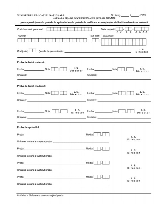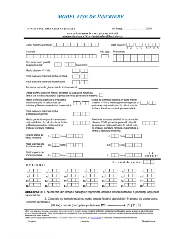 3 – 7 iulie 2019: Completarea opțiunilor în fișele de înscriere și introducerea în baza de date computerizată a datelor din fișele de înscriere;
