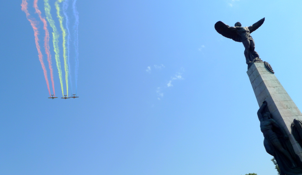 Monumentul Eroilor Aerului din Piaţa Aviatorilor va fi survolat de aproximativ 25 de aeronave militare de tip F-16 Fighting Falcon, MiG-21 LanceR, IAR-99 Şoim, IAR-99 Standard, C-27J Spartan şi IAR-330 Puma aparţinând Forţelor Aeriene Române, două aeronave de tip Eurofighter Typhoon ale Forţelor Aeriene Italiene, şase elicoptere tip EC-135 şi Mi-17 aparţinând Ministerului Afacerilor Interne, trei elicoptere IAR-330 Puma ale Serviciului Român de Informaţii şi patru aeronave tip Extra 300 aparţinând Aeroclubului României, a informat MApN.