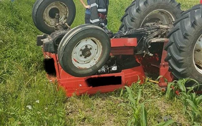 Tractor răsturnat în comuna Borca. Pompierii intervin