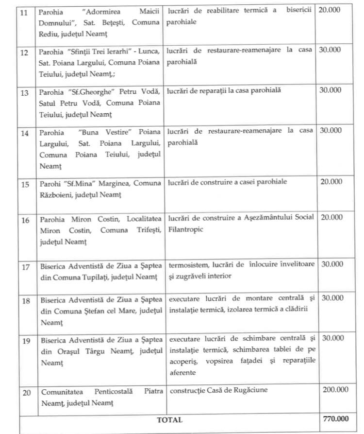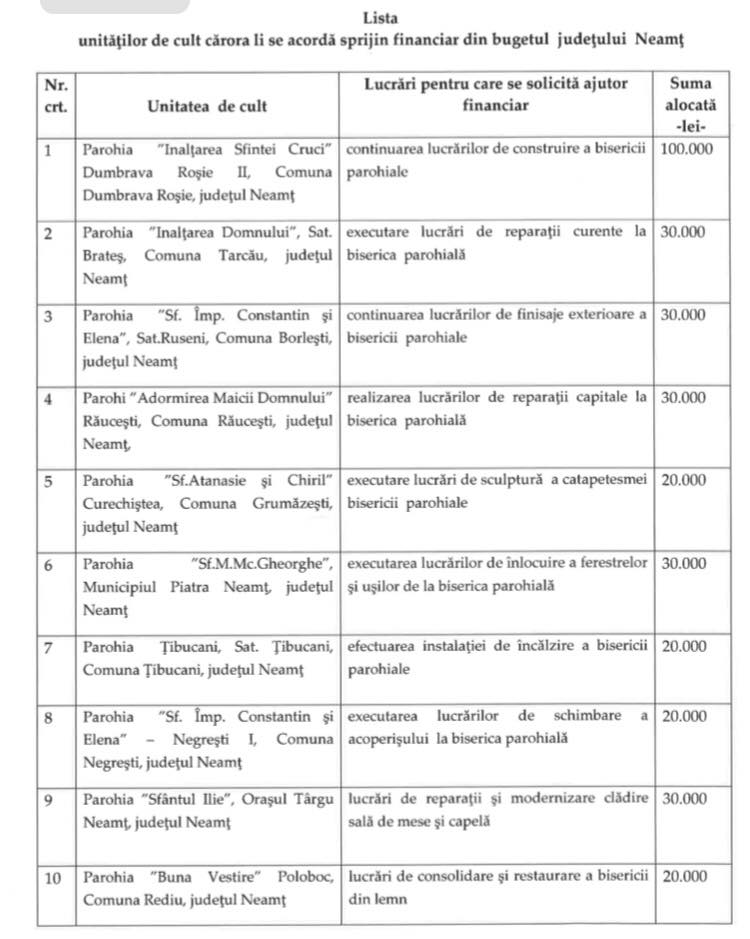 Cere și ți se va da/ Biserici din zona Târgului care primesc bani de la CJ Neamț pentru diverse lucrări