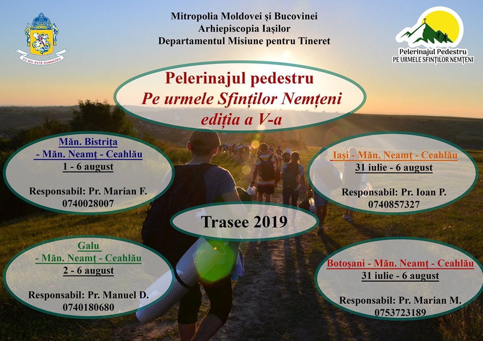Anul acesta, la cea de a V-a ediție, pelerinii vor pleca din Iași, Neamț, Botoșani, Suceava, Roman și Vaslui și se vor întâlni la Cetatea Neamțului, vor participa apoi la sărbătoarea Sfântului Cuvios Ioan Iacov de la Mănăstirea Neamț și apoi hramul „Schimbării la Față a Domnului”, la schitul de pe Muntele Ceahlău.