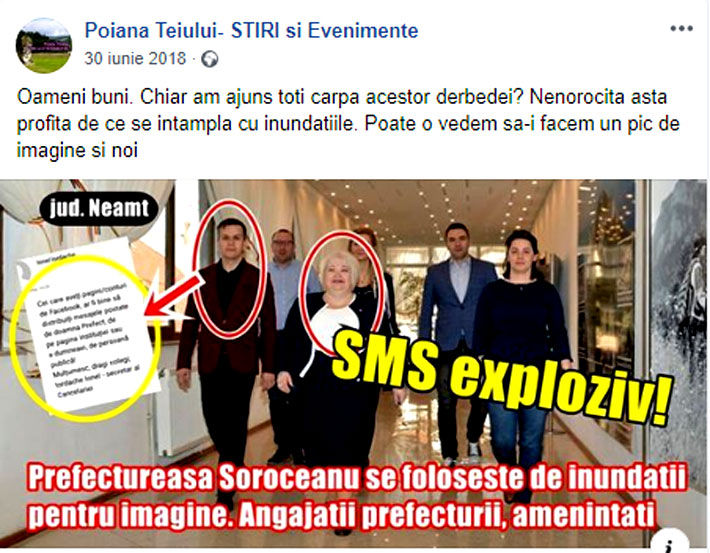 Cel mai probabil scopul acestei postări era acela de a instiga la ură oamenii afectați de inundații care ar fi urmat să intre în contact cu prefectul venit la fața locului.