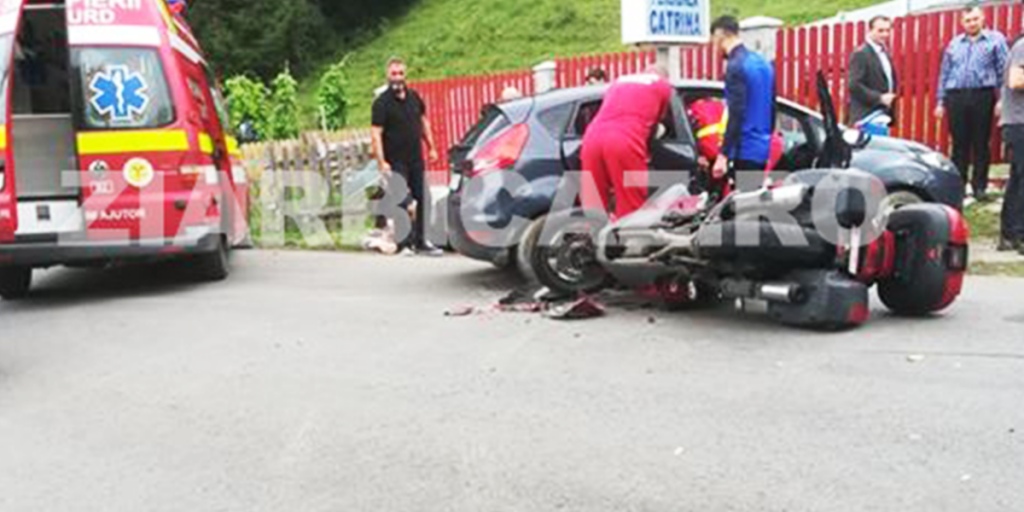 [FOTO] ACUM: Accident în Bistricioara. Impact între motocicletă și autoturism