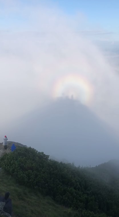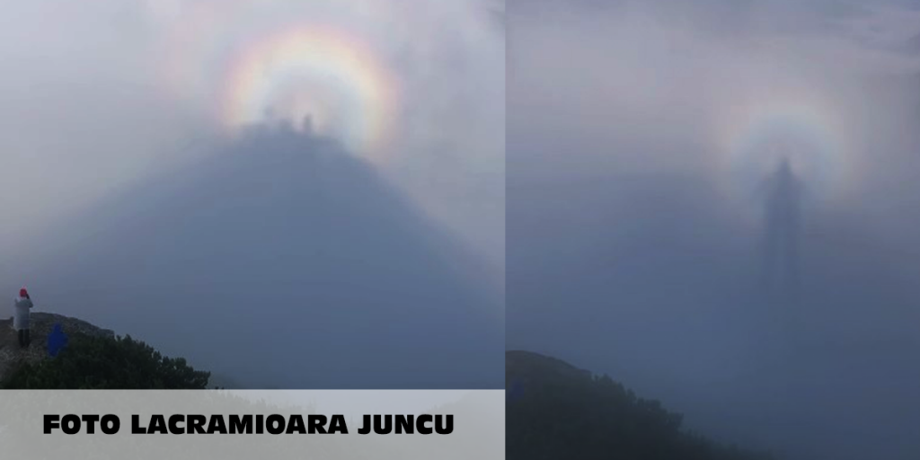 „6 august 2019, Ceahlău, Vf. Toaca. Pentru a mă convinge că e umbra mea, la un moment dat am salutat și… umbra mi-a „răspuns”. Unul dintre efectele Gloria, apare în varful piramidei.” – Lăcrămioara Juncu