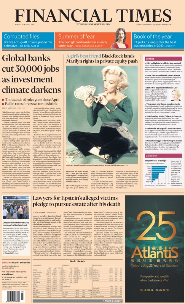 În cazul băncilor care au anunțat oficial reduceri până în prezent, disponibilizările se ridică la aproximativ 6% din totalul forței de muncă. La începutul acestei luni, Barclays a spus că a redus deja circa 3.000 de locuri de muncă, adică aproape 4 la sută din totalul forței de muncă, în trimestrul al doilea. Câteva zile mai târziu HSBC a anunțat că aproape 5.000 de angajați vor părăsi banca, din cauza unui „mediu global din ce în ce mai complex și provocator”, caracterizat prin scăderea ratelor dobânzilor din SUA, conflictul comercial și incertitudinea legată de Brexit.