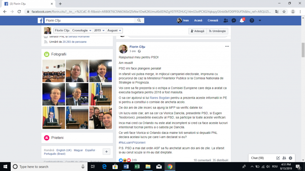 Liderul de grup al senatorilor PNL, Florin Cîțu, acuza pe contul său de Facebook, în dimineața zilei de marți, 13 august, că Guvernul ar fi falsificat rectificarea bugetară printr-o operațiune a celor de la Ministerul Finanțelor Publice (MFP) și Comisia Națională de Studii și Prognoză (CNSP).