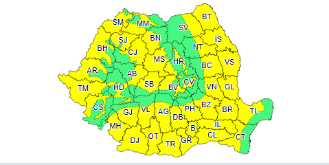 Potrivit ANM, de miercuri, 14 august, ora 9:00, până vineri, 16 august, ora 9:00, va intra în vigoare o avertizare de manifestări de instabilitate atmosferică și cantități de apă însemnate.