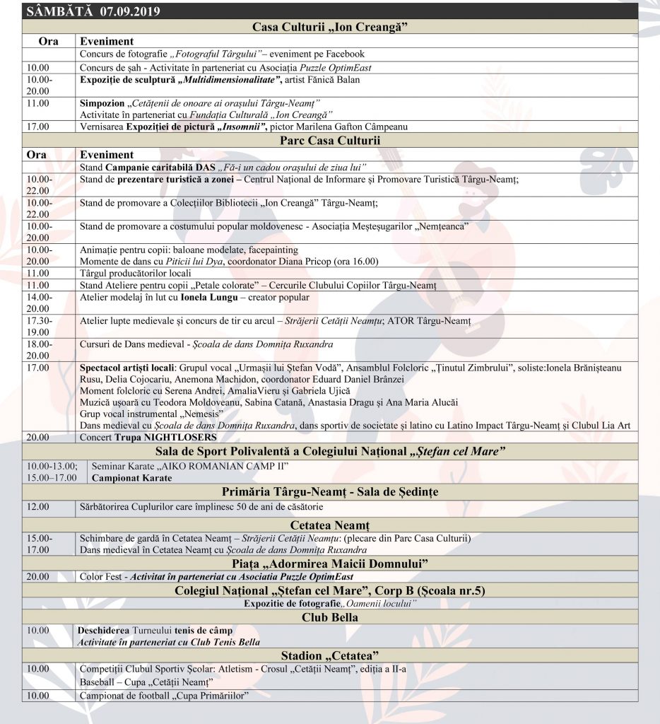 Zilele orașului Târgu Neamț în 2019: cu, pentru și despre „Oamenii locului” [PROGRAM]