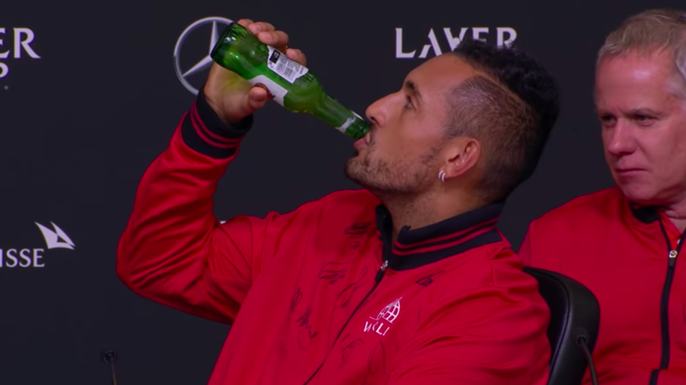 A declarat forfait înainte de meciurile din ultima zi de la Laver Cup (la fel precum Rafael Nadal), iar la conferința de presă următoare a surprins asistența atunci când a băut dintr-o bere. Nick Kyrgios este un personaj aparte în circuitul ATP, derapajele punând în umbră loviturile fantastice pe care le reușește uneori.