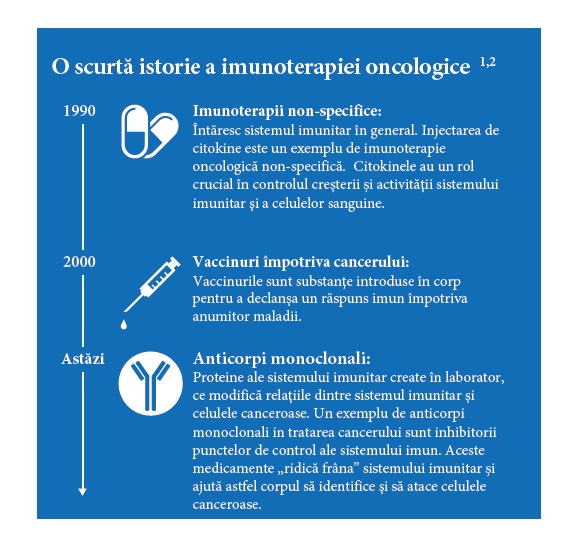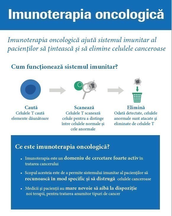 Imunoterapia oncologică reprezintă cea mai nouă descoperire în lupta împotriva cancerului, de la apariţia terapiilor ţintite, în urma cu peste 20 de ani. Imunoterapia se bazează pe răspunsul natural de apărare al organismului, care poate ajuta sistemul imunitar al pacienţilor să poată lupta cu boala.