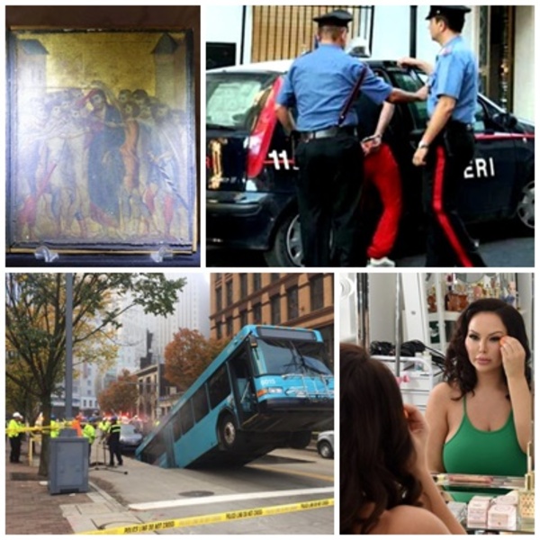 Faze tari: Imagini uluitoare cu un autobuz „înghițit” pe jumătate de o groapă apărută brusc în asfalt; Pictura renascentistă găsită într-o bucătărie, vândută pentru o sumă colosală – Faze Tari