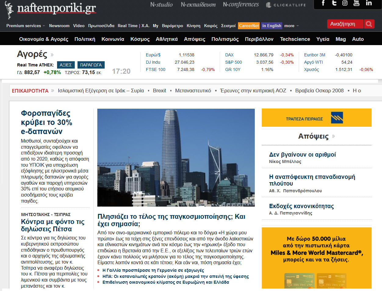 Reamintim că un raport recent al OCDE a arătat că performanța Greciei în domeniul competitivității fiscale, crucială pentru a atrage investiții și a stimula consumul și dezvoltarea, rămâne slabă. În clasamentul respectiv al OCDE pentru anul 2019, Grecia se află pe locul 30 din 36 de țări, după ce a urcat o treaptă față de anul trecut.