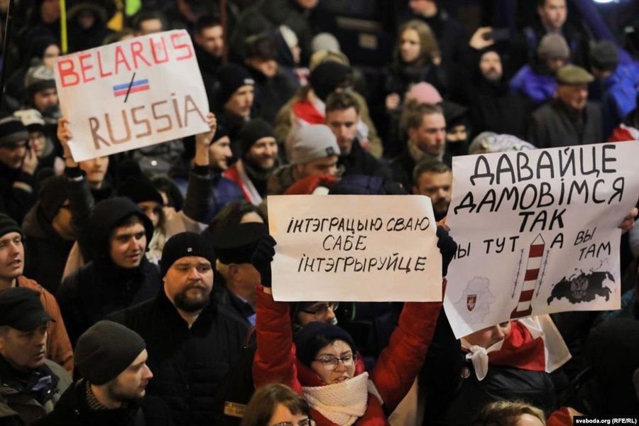 Demonstranții adunați la Minsk se tem că discuțiile vor afecta independența fostei republici sovietice. Peste 1.000 de manifestanți au mărșăluit vineri pe străzile capitalei, purtând pancarte cu mesajul ”Întâi Crimeea, apoi Belarus” sau ”Stop anexării”, demonstrațiile fiind reluate sâmbătă.
