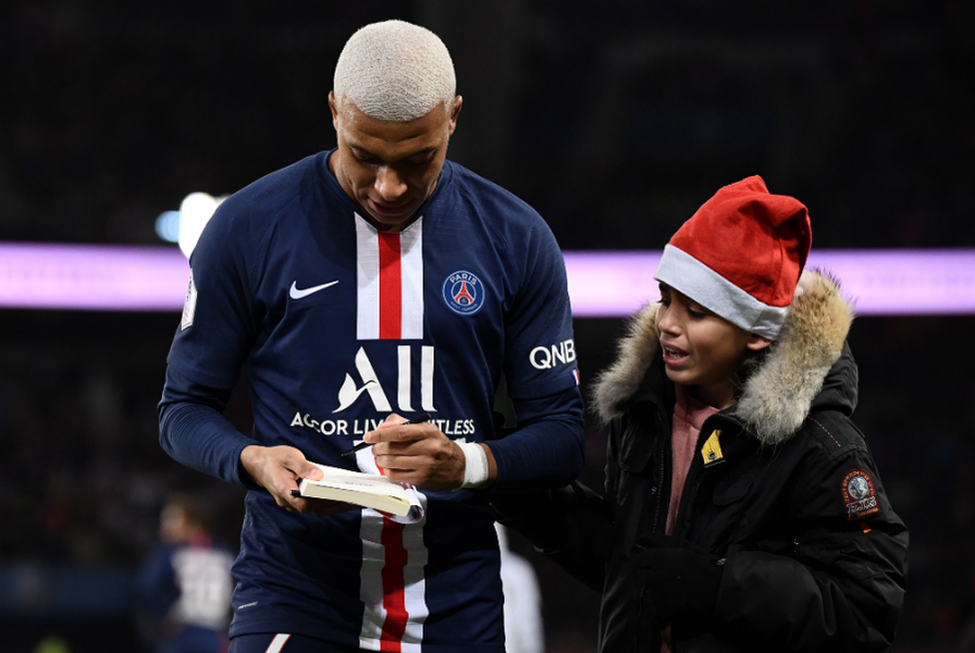 The kid ran on to the pitch in a Christmas hat to meet @KMbappe—he came away with a hug and a signed book uD83CuDF85 pic.twitter.com/j5FAkCOMSp